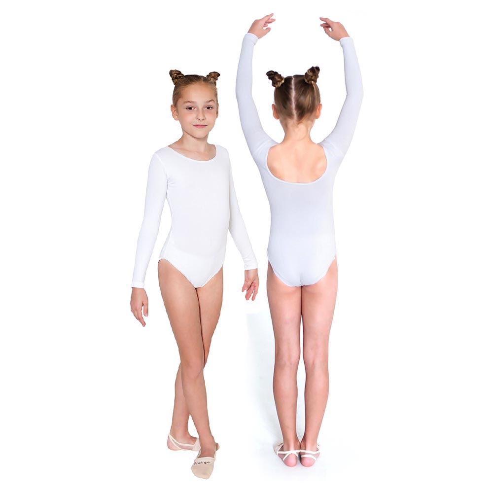 Купальник гимнастический длин. рукава Indigo SM-093-34, р.34, хлопок, эластан, белый