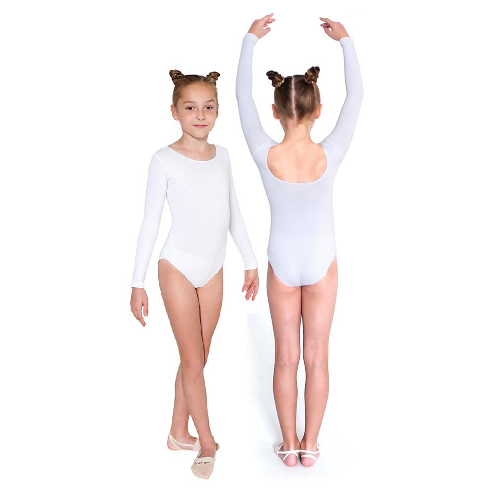 Купальник гимнастический длин. рукава Indigo SM-093-36, р.36, хлопок, эластан, белый