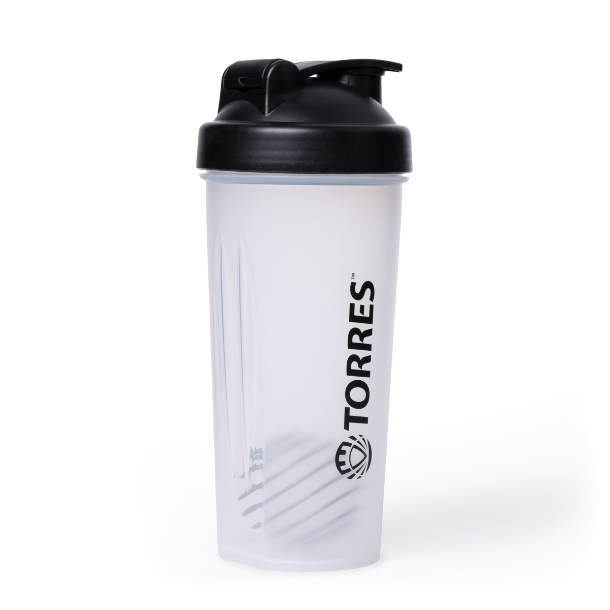Шейкер спортивный TORRES, S01-600-01, 600мл, черная крышка с колпачком, пластик, прозрачный