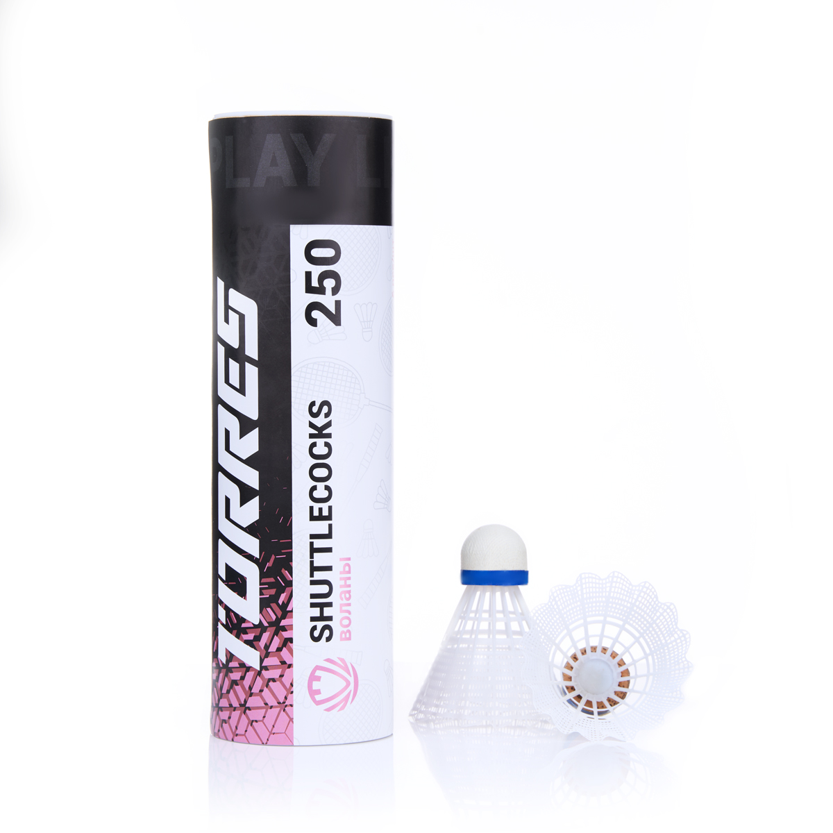 Воланы для бадминтона TORRES 250 (нейлон/пробка), BD23109, уп.6шт.белый, сред.скор.