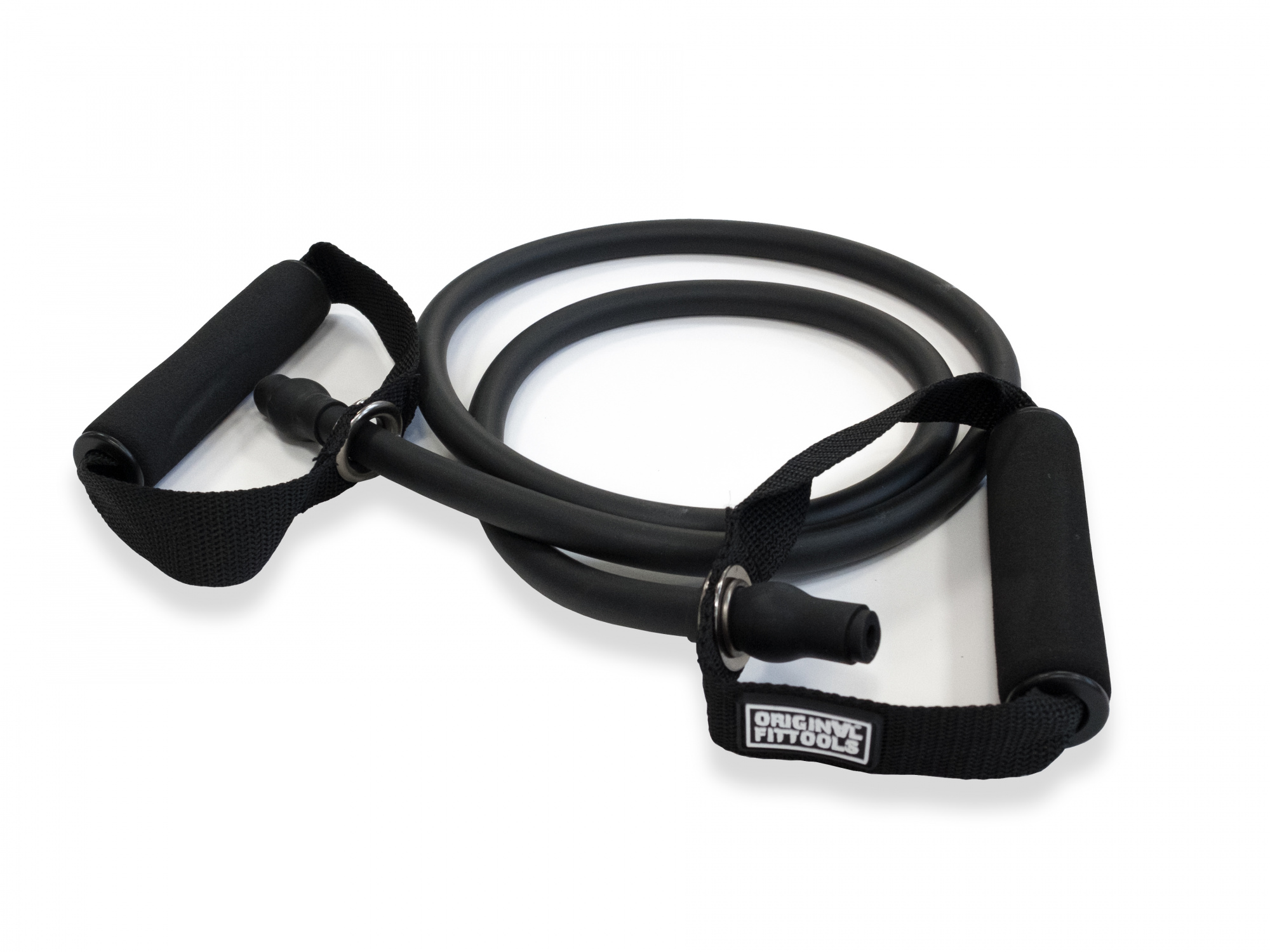 Для индивидуальных занятий трубчатый эспандер с ручками Original FitTools чёрного цвета размером 3*13*1350 мм