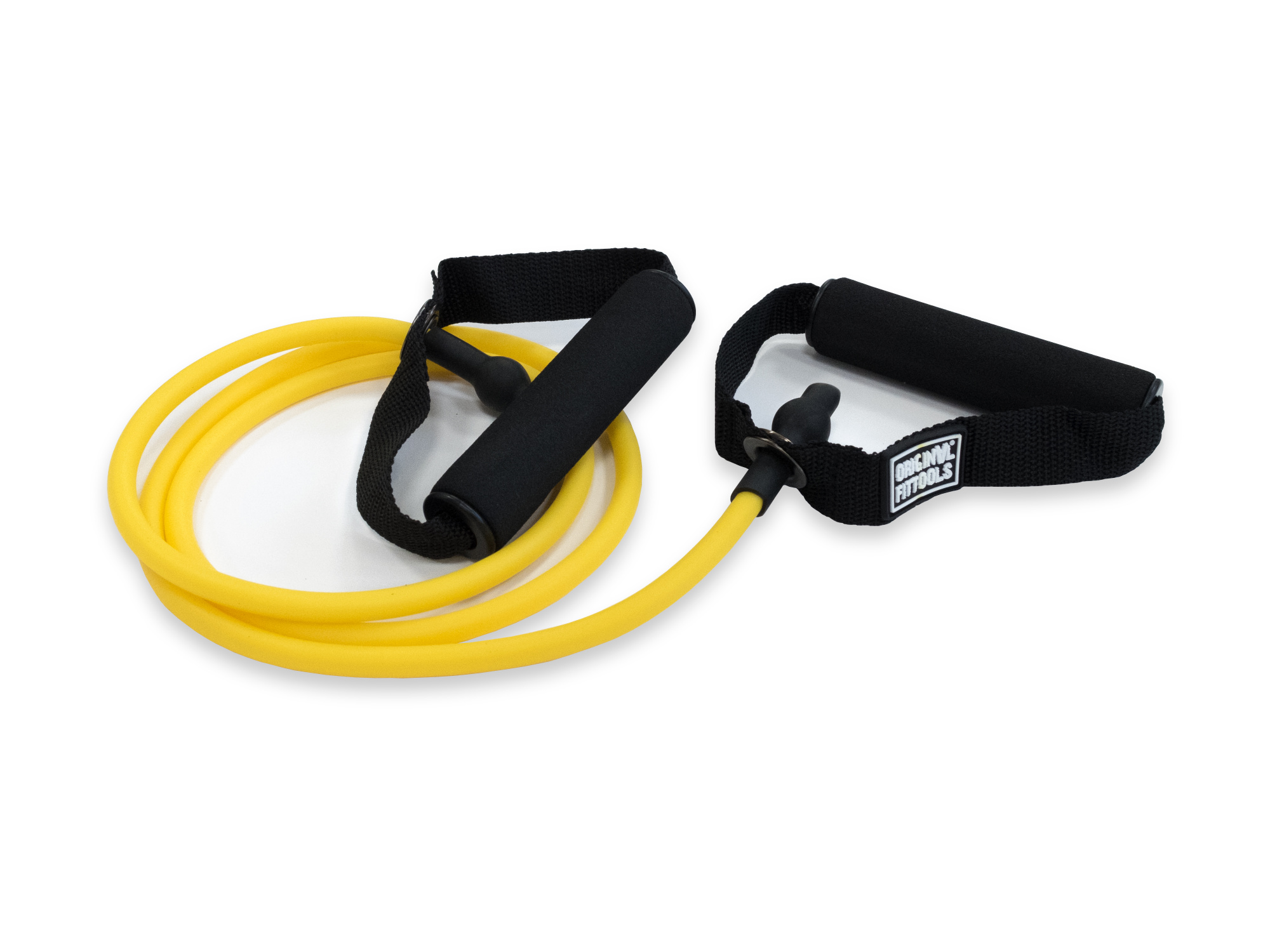 Для индивидуальных занятий трубчатый эспандер с ручками Original FitTools жёлтого цвета размером 1350х5х9 мм