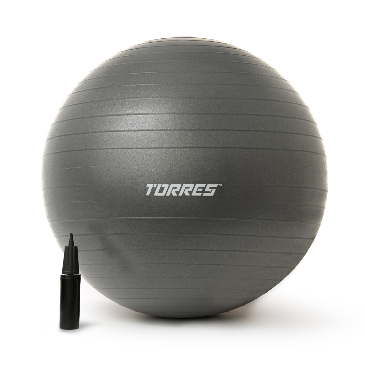 Мяч гимн. TORRES, FB122585, диам. 85 см, эласт. ПВХ, с защ.от взрыва,с насосом, серый