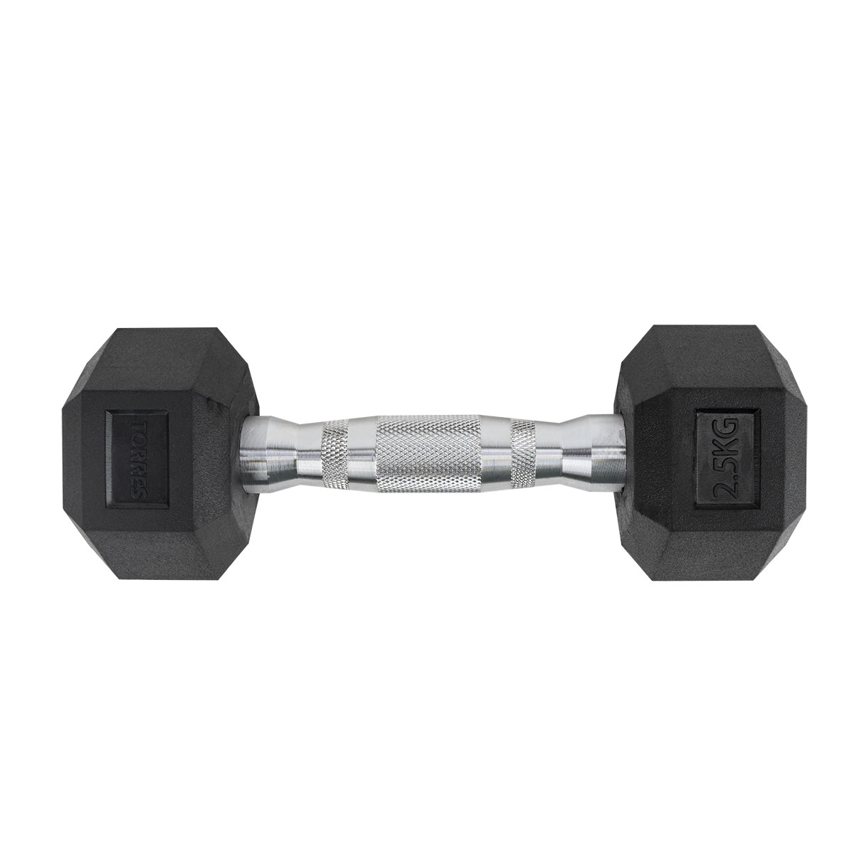 Гантель TORRES 2,5 кг, PL519025, металл в резиновой оболочке, форма шестигранник, черный