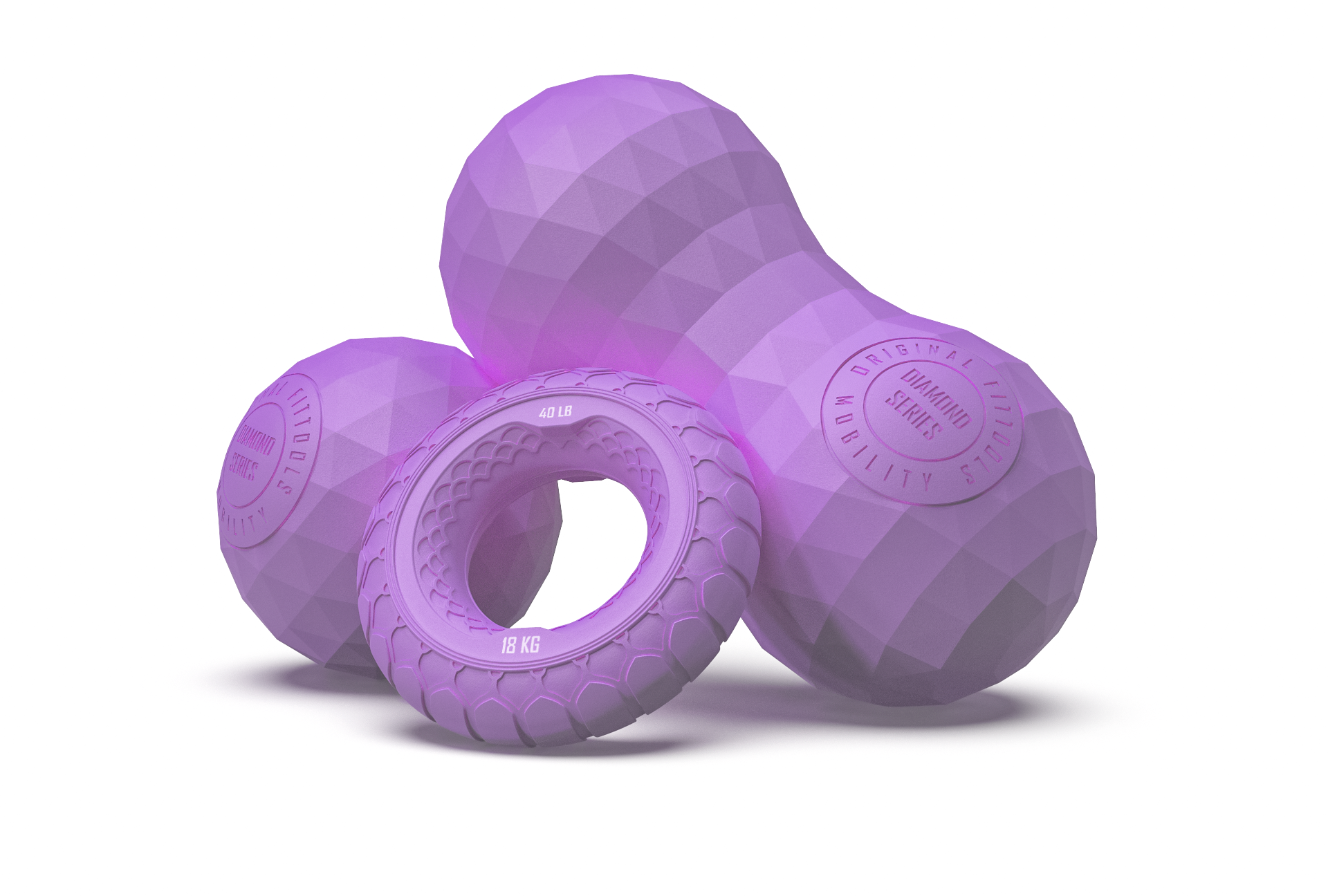 Набор из двух массажных мячей с кистевым эспандером пурпурный