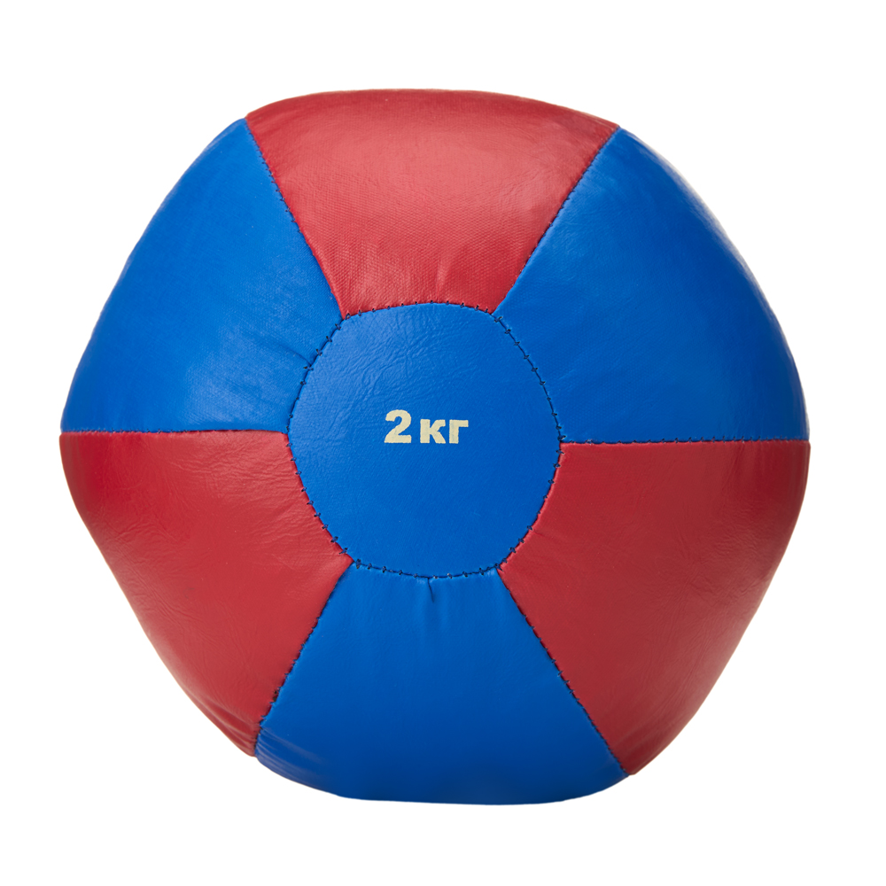 Медбол 3C144-K64, 2кг, иск.кожа, наполнитель резиновая крошка, диам. 19 см, маш сшивка, сине-красный