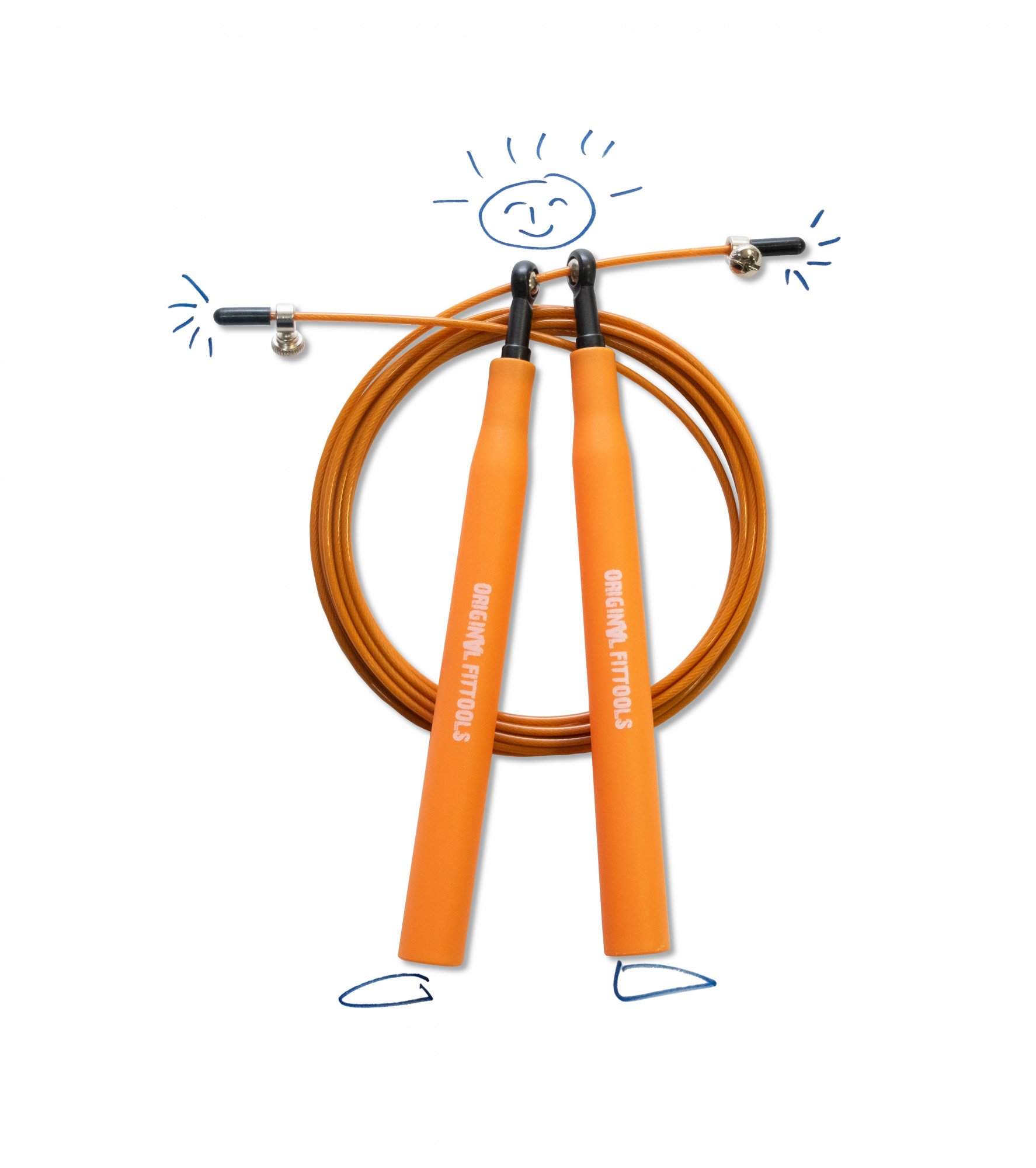 Скакалка имеет облегченные удобные ручки из ABS пластика, стальной шарнир с подшипником и стальной трос в оболочке.