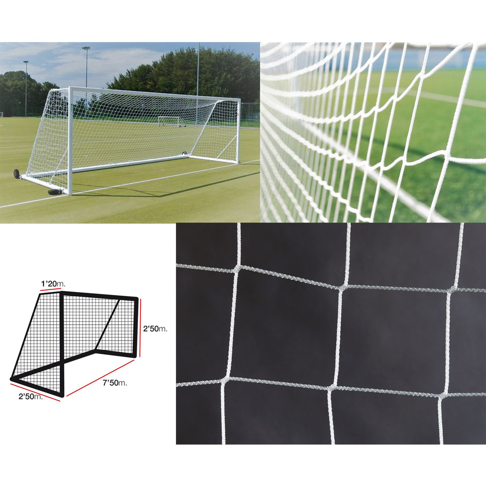 Сетка футб. EL LEON DE ORO, 12443010000,a:7.5 b:2.5 c:1.2 d:2.5, нить 3мм ПП, ячейка 10х10 см, белый