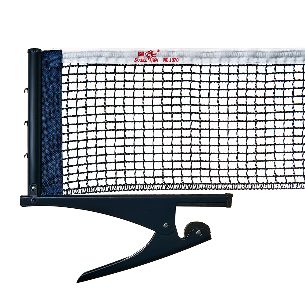 Комплект состоит из сетки для настольного тенниса Double Fish 137 ITTF Approved и двух металлических стоек с зажимами, облегчающими её установку.