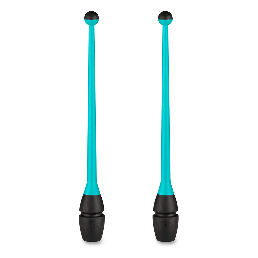 Булавы для худ. гимнастики INDIGO, IN017-BBK, 36 см, пластик, каучук, в компл. 2шт, бирюзово-черный