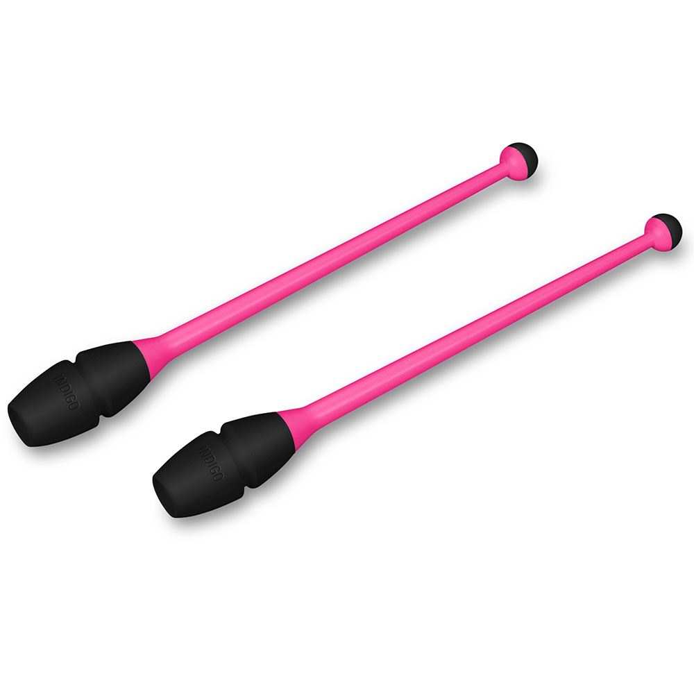 Булавы для худ. гимнастики INDIGO, IN017-PB, 36 см, пластик, каучук, в компл. 2шт, розово-черный