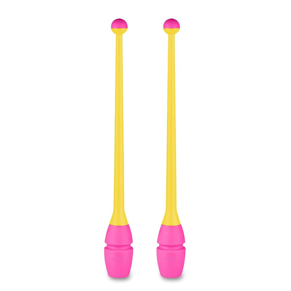 Булавы для худ. гимнастики INDIGO, IN017-YP, 36 см, пластик, каучук, в компл. 2шт, желто-роз