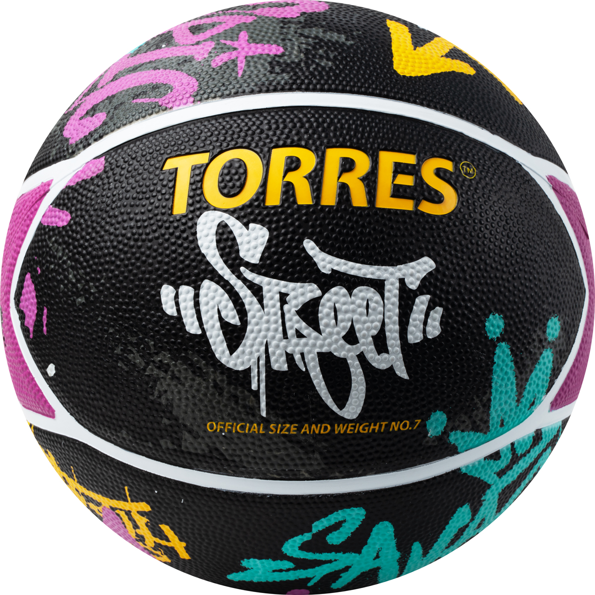 Мяч баск. TORRES Street, B023107, р.7, 7 панел.резина, нейлон.корд, бут. кам., чёрно-мультиколор