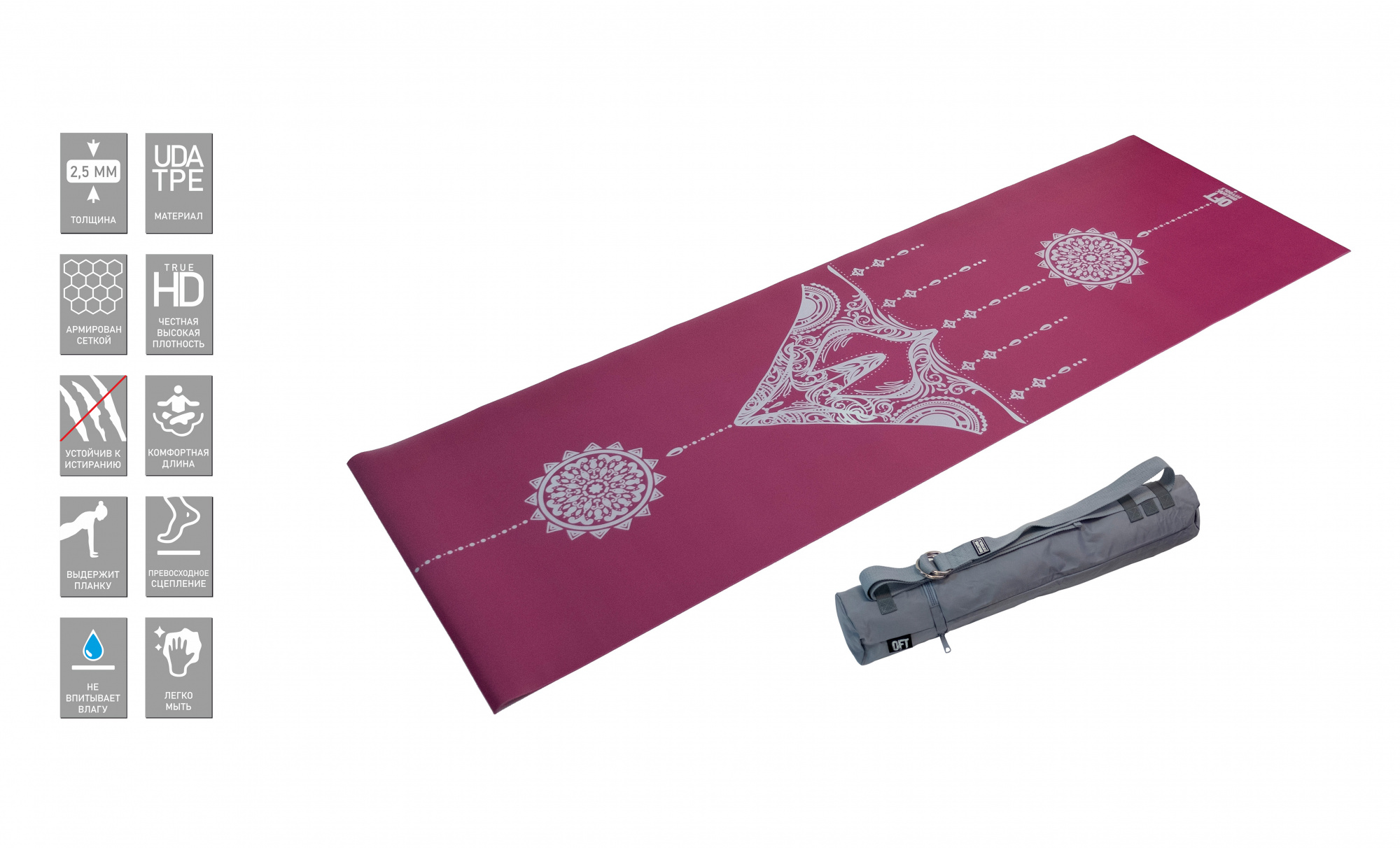 Коврик для йоги 2.5 мм пурпурный в сумке с ремешком FT-TYM025-PP