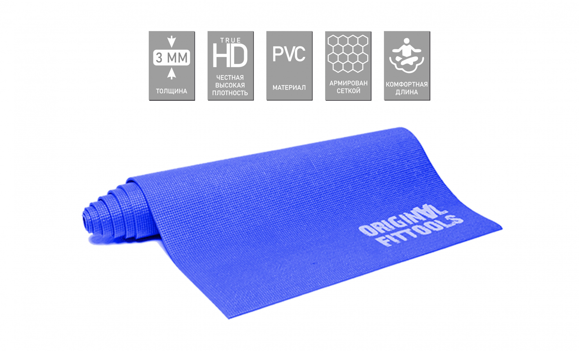 Удобный ячеистый коврик для йоги 3 мм 1900х610х3 мм синего цвета.