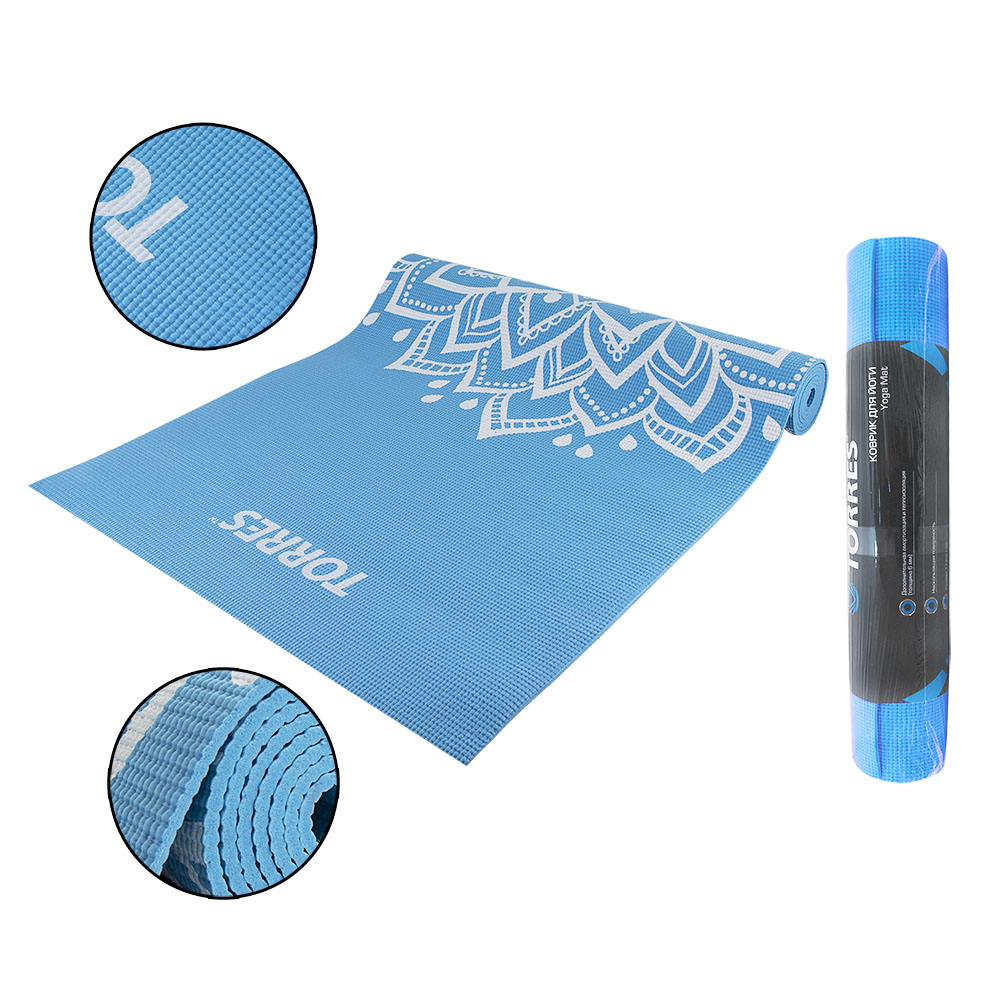 Коврик для йоги TORRES Basis 4, YL10024, PVC 4 мм, нескользящее покрытие, голубо-белый