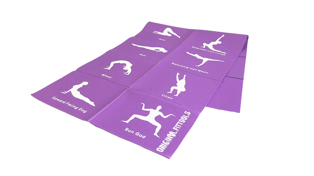 Основной особенностью складного коврика для йоги 4 мм FT-YGMF-04 являются напечатанные пиктограммы с упражнениями для помощи в освоении йоги.