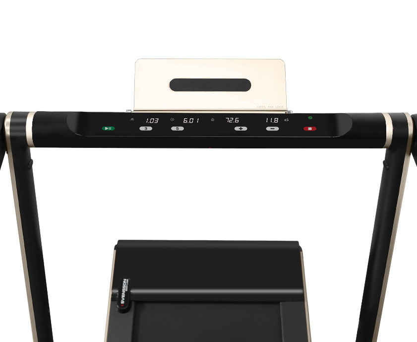 Консоль SPACETECH - это отличное решение не только с точки зрения функционала, но и дизайна. Она представляет собой тонкую панель с черной акриловой поверхностью. 4 LED-дисплея выводят следующие тренировочные данные: дистанция, время, количество шагов, калории и скорость. Сенсорные кнопки изменяют показатели консоли и отличаются своей долговечностью и влагостойкостью. Все элементы консоли прекрасно видны даже в условиях слабой освещенности. Широкая алюминиевая подставка для смартфонов и планшетов фиксируется при помощи встроенной системы складывания. Пользователь может слушать любимую музыку через встроенные динамики, достаточно подключить оборудование к разъему Audio IN minijack 3,5 мм.
