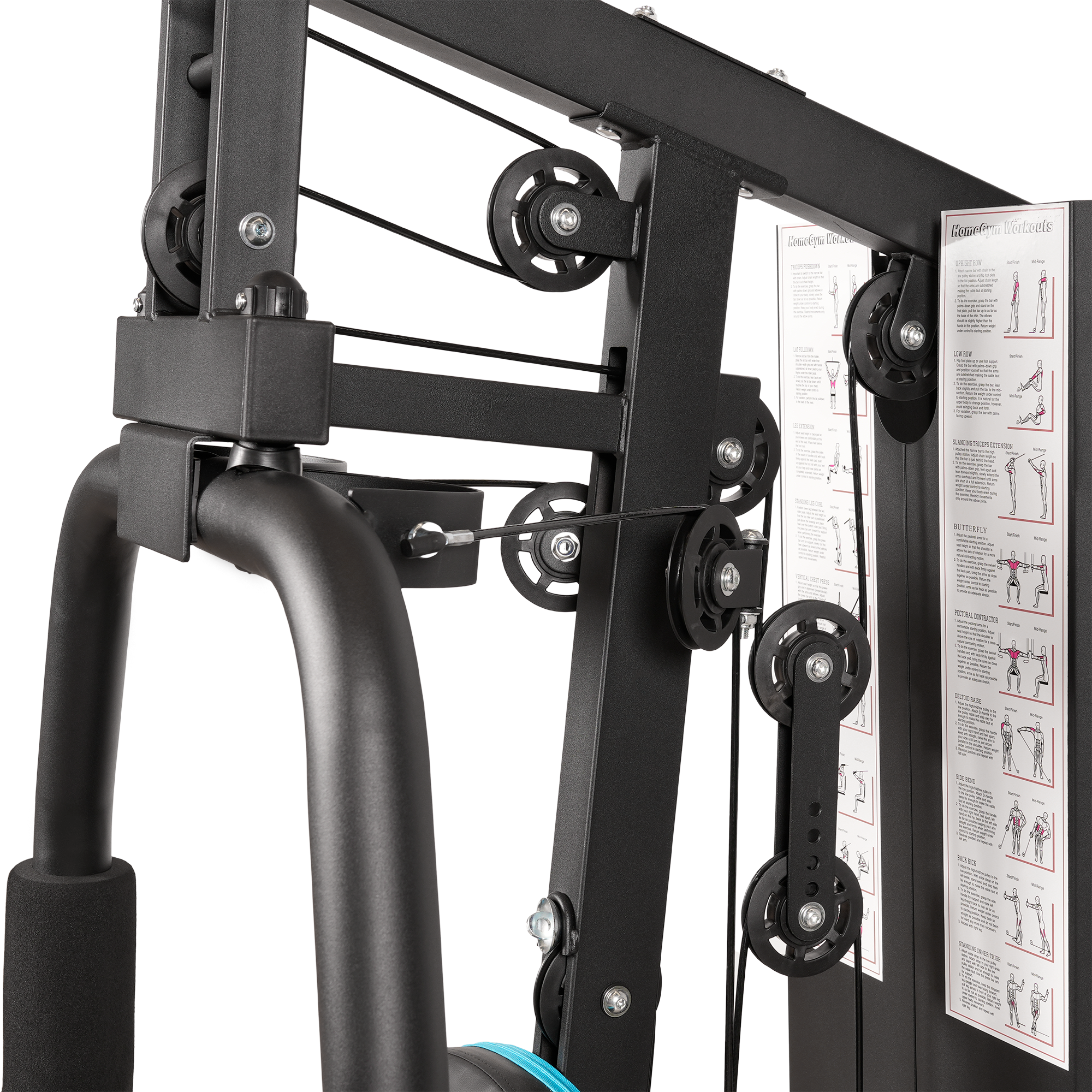 В комплекте с OXYGEN FITNESS NOLAN вы найдете множество удобных аксессуаров: канат для трицепса, рукоятку для тяги сверху, манжету для ноги и прямую рукоятку. Также в комплектацию входят неопреновые валики: 4 для ног и 2 для рук, что обеспечивает дополнительный комфорт и безопасность во время тренировок. Размеры подушек (парта бицепса, спинка и сиденье) разработаны с учетом анатомических особенностей, что способствует правильной поддержке тела.
