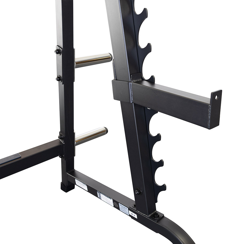 Благодаря регулируемым уровням упоров, рама подходит для атлетов любого роста и уровня подготовки. Усиленная стальная рама выдерживает большие нагрузки, а компактная форма делает установку возможной даже в ограниченном пространстве.