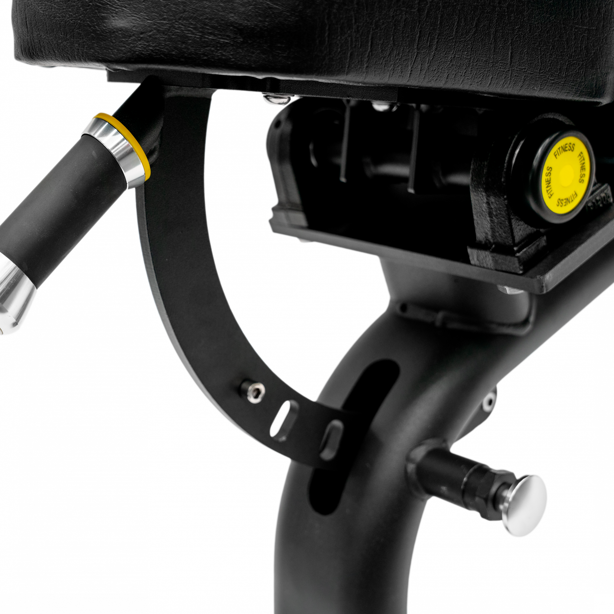 Тренажёр отличается усиленной рамой, износостойкой обивкой, 7 уровней положений спинки и 3 уровня положения сиденья, для разнообразия позиционирования тренировок. Для облегчения транспортировки и передвижения скамьи по тренажёрному залу имеются специальные бесшумные ролики и рукоятка.